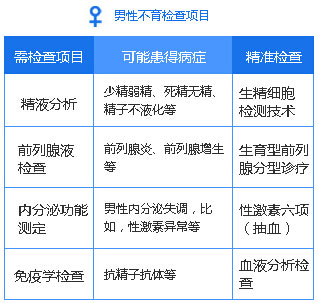 1.男性不育多数为精液异常问题,主要筛查精子活力、数量。取精从几分钟到一小时不等,精液检测结果一般在1小时左右。结果当天出来,检测项目单一,需要费用低。