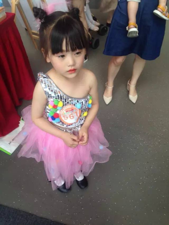 做好了漂亮的造型,穿上了亮丽的演出服装,我们的小选手超级可爱有没有?