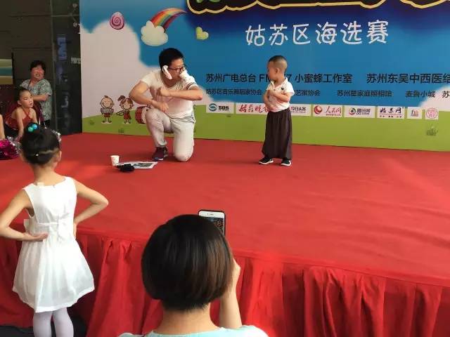 每一个小选手都赢得了属于他们自己的忠实粉丝,你们看,趴在舞台边缘的迷弟迷妹们,有的已经跟着小选手手舞足蹈起来,这就是舞台的魅力,让人忍不住一起快乐开心起来!这也是我们举办东吴宝宝大赛的初衷。加油吧,孩子们!