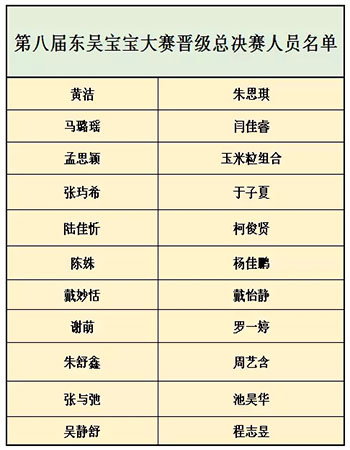 原标题:第八届东吴宝宝大赛晋级总决赛人员名单新鲜出炉啦, 快看看有没有你们家的娃!!!