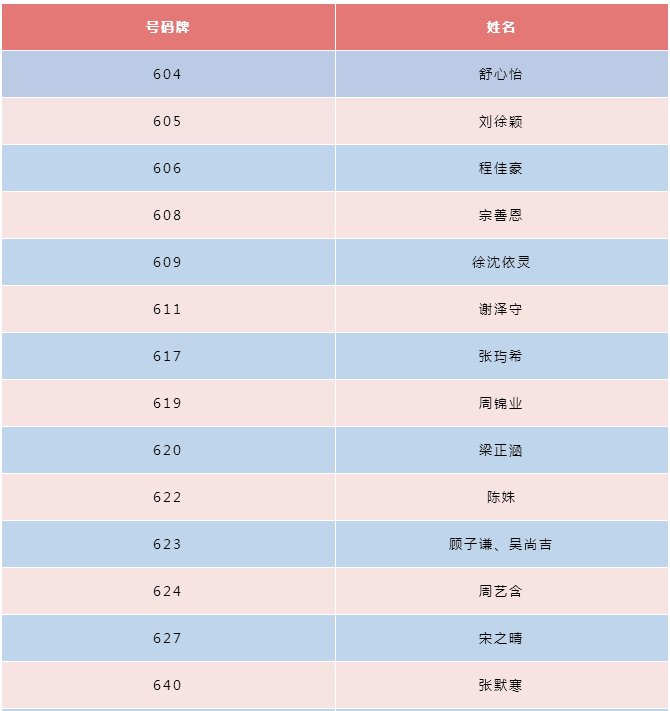 刚刚出炉的晋级名单