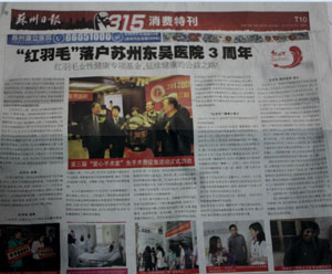 苏州是我国经济发展的先进城市,也是外来人口聚集较多的城市,不及时就医的情况更为突出。苏州东吴中西医结合医院历年来重视公益事业的投入和支持,为了解决苏州市民看病困难、减轻看病负担,在苏州市妇联的组织下,苏州东吴中西医结合医院联合红羽毛基金会,联合举办“红羽毛·爱心手术室”大型优惠公益活动。