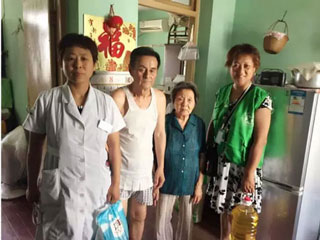 据虹桥社区居委会介绍,小区里有位沈耀华老人患有高血压、糖尿病、脑中风,目前行动不便,反应迟钝,东吴义工队成员当即决定送医上门服务。来到沈耀华老人的家中,东吴医疗义工队的江岩医生为老夫妻俩做了详细的检查,并叮嘱了高血糖、糖尿病等疾病的日常注意事项。临走时,东吴义工队特意为老夫妻俩送上了一桶油和一袋大米以示关怀。