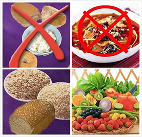 少食精米精面,少食辛辣;多食蔬菜、水果、粗粮