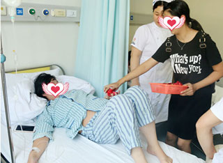 报喜家庭在病区发喜糖,让备孕的妈妈们沾点喜气