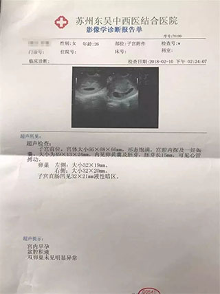 通过检查发现:卵泡黄素化,一侧输卵管通而不畅,存在排卵障碍。索主任告诉我们:“初次见到小洁,她并没有像其他患者一样慌乱不安,一直按照我的治疗方案在进行。即使当时她的情况并没有那么乐观,她还是很积极的配合我的治疗,这对我们医生来说,是患者潜意识里对医生较大的信任和支持。也正是这份淡定与从容,她的身体在接受了输卵管通液术之后,经过2次促排卵就成功怀孕了。从检查、治疗,到怀孕,整个过程都非常的顺利。今天她到医院进行检查,数据显示一切正常。”