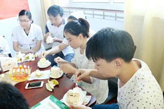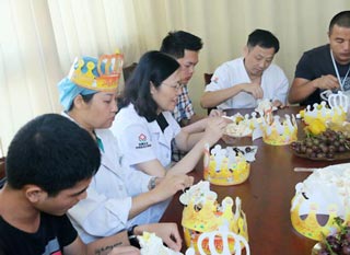 每一次生日会,医院业务院长曾志贤都不忘给这些来自五湖四海的小寿星们送去祝福。大家静静地聆听着,像是听着自己的长辈送来的祝福,心中慢慢泛起丝丝感动。不过,用曾院长的话来说,生日会是让大家一起开心的。于是,整个生日会在曾院长的带领下,大家愉悦的歌唱,幸福的吹蜡烛、吃水果及蛋糕,较后更是有礼物拿。