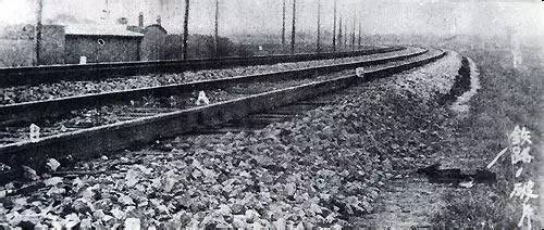 1931年9月18日夜,在日本关东军安排下,铁道“守备队”炸毁沈阳柳条湖附近日本修筑的南满铁路路轨,并栽赃嫁祸于中国军队。日军以此为借口,炮轰沈阳北大营,是为“九•一八”事变。图为1931年“九•一八”事变时被日军炸毁的南满铁路柳条湖段现场。