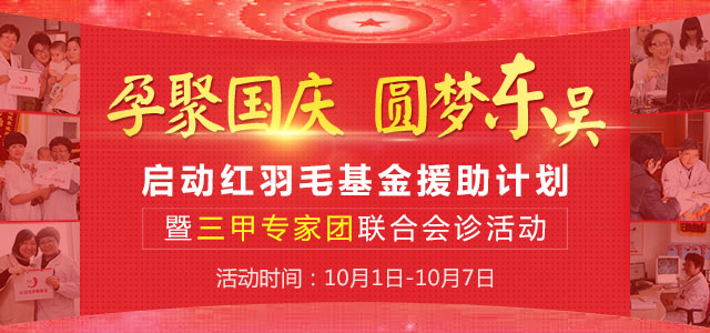 十月国庆,普天同庆,为能更好帮助广大患者解决不孕不育难题,苏州东吴中西医结合医院决定在10月1日-10月7日期间开展“孕聚国庆,圆梦东吴”红羽毛基金援助计划援助不孕不育家庭,届时再邀请沪苏三甲专家团来院会诊,全面助力生育障碍夫妇早日得子圆梦。