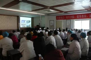 随后,麻醉科主任徐长贵讲解了心肺复苏的基本理论知识,重点讲述了心肺复苏术的基本原则、方法以及详细的操作流程。理论知识讲解后,又在现场为医护人员对心肺复苏的实践技能进行了详细的讲解和规范的操作演示,确保现场的每位医护人员都能操作,并且规范熟练地掌握心肺复苏术。徐主任表示,心肺复苏是医护人员必备的技能之一,通过现场医护人员的练习看来,已都能较好的掌握技能要领。
