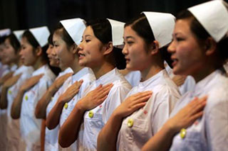 “我志愿献身护理事业,奉行革命的人道主义精神,坚守救死扶伤的信念,履行保存生命、减轻痛苦、促进健康的职责。