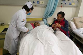 她告诉我们很多关于医生和护士对她无微不至照顾的细节。因为她的病情不宜外出,一天三餐饭都是护士从餐厅给她带回来的;她咳嗽喘不过来气,她的责任护士郑司桥不忙的时候就守在她的病床前给她拍背……