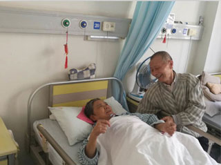 老伴患有严重的糖尿病,躺在东吴中西医结合医院的病床上已经很多年了。他就干脆把家搬到了医院病房。每天的殷勤伺候,从不抱怨。