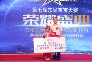 上届东吴宝宝总冠军蒋俞玥一路过关斩将赢得冠军,她的爸爸陪她一起上台领奖,并对现场所有的观众和参赛小朋友致谢。