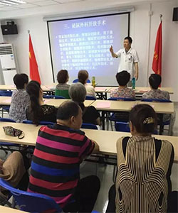 6月21日,苏州东吴中西医结合医院外科主任王永新,带领东吴医疗义工队亲自走进了福运公寓,走上了社区的讲台,为百姓们科普外科常见病的防治及发病措施,深受社区居民的欢迎和好评。