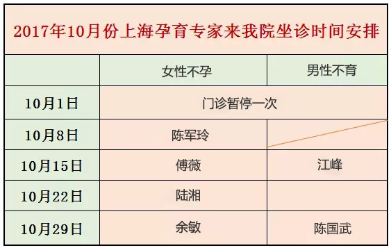 完整标题:上海权威孕育专家10月份来我院坐诊安排