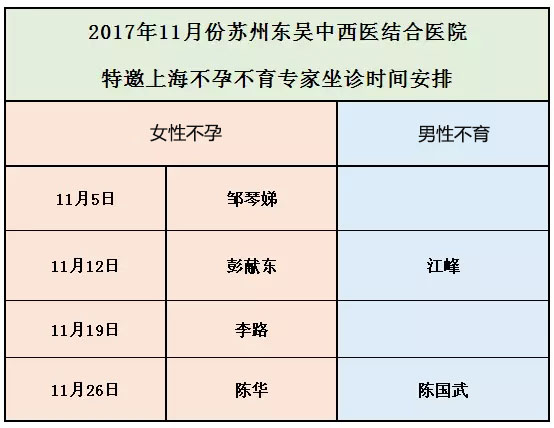 完整标题:【通知】上海权威孕育专家11月份来我院坐诊安排