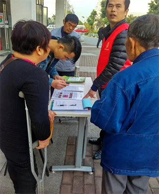 义诊活动中,东吴医疗义工队人员为东渚镇社区居民们解答肛肠方面相关问题,对于生活、饮食、进补等方面存在的困惑,一对一地进行指导。义工队人员热情接待前来询诊的市民,并就如何预防肛肠疾病,提高自身保健意识进行了普及宣教。