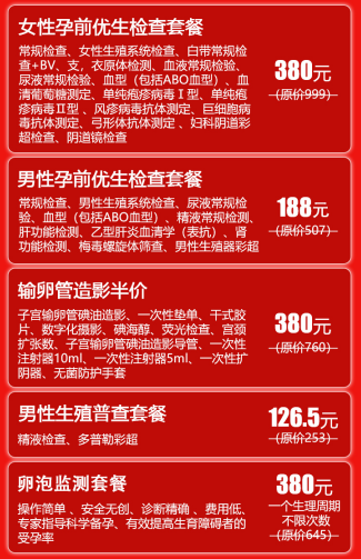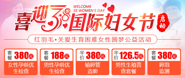 (1)红羽毛助孕好礼一:女性孕前优生检查套餐原价999元 现在网络预约仅需380元>>>点击立即预约